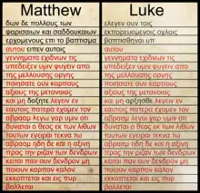 Nu er der almindelig enighed om at Markus-evangeliet er ældst, og at forfatterne til Matthæus- og Lukas-evangelierne har kendt Markus-evangeliet. Og der er enighed om, at Lukasevangeliet er yngre end Matthæus-evangeliet.
