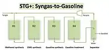 System til fremstilling af syntetisk benzin (eng. gasoline) fra syntesegas.