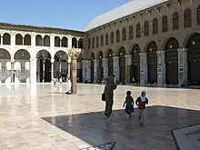 De "retledede" rashidun-kaliffer blev efterfulgt af umajjaderne, som oprettede det andet muslimske kalifat. Den første umayyadekalif, Muawiyah ibn Abi Sufyan, gjorde Dimašq til sin hovedstad, og som rigets centrum gik Syrien ind i en økonomisk blomstringsperiode. De tidlige umayyadkaliffer, som 'Abd al-Malik og al-Walid 1., byggede storslåede moskéer og paladser rundt om i Syrien, og særlig i Ḥalab og Ḥimṣ. De kristne blev også tolererede, og de holdt flere stillinger i regeringen.