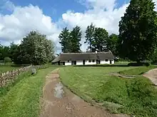 Huset er genopført på det danske frilandsmuseum efter flytning fra Tågense på Lolland i 1946.