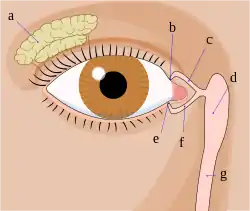 Tårekirtlen har udførselsgange med 10-20 åbninger udadtil ved øjet.