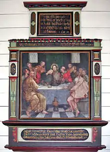 På nordvæggen af midterskibet står et altertavle – et enkelt værk fra senrenæssancen, omkring 1647. Maleriet med dimensionerne 100 x 100cm blev restaureret i 1961. Det forestiller Den sidste nadver, øverst refereres til 1. Korintherbrev (1 Kor 11,26). Nederst findes den danske indskrift: