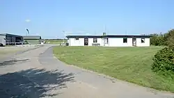 ![]() Flyvepladsens indkørsel 2023. Foran den hvide bygning stod tidligere en Saab Draken jager | |||||||||||