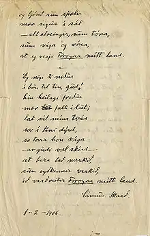 Sangens oprindelige manuskript fra 1906.