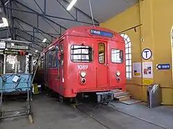 ![]() T1000-vogn hos Sporveismuseet Vognhall 5. | |
