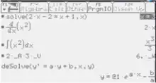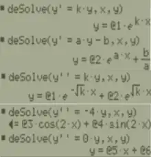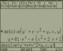 ![]() TI-89 løser en række differentialligninger algebraisk: proportional første ordens differentialligning samt lineær første ordens differentialligning såvel som proportional anden ordens differentialligning.