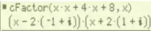 - Faktorisere polynomium med kommandoen: factor(polynomium) ; et polynomium med komplekse rødder faktoriserer TI-89 med kommandoen cfactor(polynomium) (Se tabel nedenfor.)