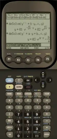 siden 2011 | Samme som TI-89 foruden: | Kommando løser differentialligning algebraisk:[24]deSolve( ,,)
