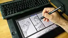 En tablet er en elektronisk tegneplade, der kan kobles til computeren eller være indbygget i computeren. På den måde kan man med en elektronisk pen tegne direkte ind i et program som Photoshop eller Painter.