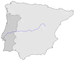 Man regner normalt med, at den spanske del udgør ca. 730 km og den portugisiske del 275 km. Knap 50 km af floden udgør dog international grænse mellem de to lande. Den har et afvandingsområde på ca. 86.000 km2, hvoraf 70 % ligger i Spanien og 30 % i Portugal.