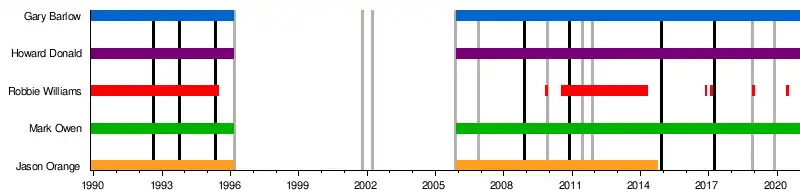 - Robbie Williams (1989–1995, 2010–2014)
