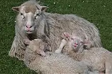 Moderfår og lam.