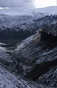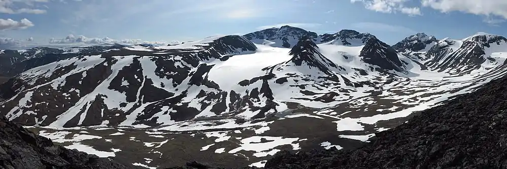 Området er højalpint og stenet. Dalen omgives foruden af Kebnekaisemassivets udløbere Norra og Södra Klippbergen også af Gaskkasbákti (2.043 moh.), Kaskasatjåkka (2.076 moh.), Darfálčohkka (1.904 moh.) og Darfálbákti (1.806 moh.). Flere isbræer munder ud i dalen; de største er Storgletsjeren, Isfaldsgletsjeren og Kebnepaktegletsjeren.
