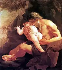 Sammen med Ixion var også Tantalos, konge af Sipylos, en dødelig som Zeus havde ubegrænset tillid til[1], blevet inviteret til middag på Olympen. Her stjal han dog gudernes nektar og ambrosia. Det gik godt i lang tid, og derfor tvivlede han på gudernes visdom. Tantalos inviterede guderne til middag. Som hovedret slagtede han sin søn Pelops og serverede ham for guderne. Alle guderne undtagen Demeter gennemskuede det naturligvis, men Demeter, der var fuld af sorg over sin datter Persefone, der var blevet taget af Hades som dronning, tog en bid af Pelops' skulder. Zeus bragte Pelops tilbage til livet, og Tantalos blev dømt til evig sult og tørst i Tartaros. Her står han i vand til hagen, men det synker, når han bukker sig ned, og over hans hoved hænger modne frugter, der flytter sig væk, når han rækker ud efter dem.