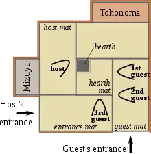 Der er regler for antallet af tatami, og hvordan de skal placeres i et rum. I Edo-perioden var "lykkebringende" og ildevarslende tatami-arrangementer klart forskellige, og tatami blev flyttet rundt afhængig af lejligheden. Nu om stunder bruges normalt den "lykkebringende" udgave. I denne udformning mødes tatami i en T-form, hvor de i den "ildevarslende" udgave mødes i en +form.[2]
