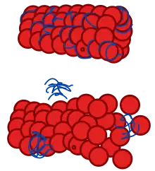 Diagram af normal mikrotubuli og en påvirket af tauopati.