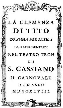 Titelbladet til librettoen til opera opført på Teatro San Cassiano i 1748