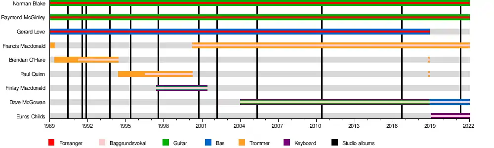 - Brendan O'Hare – trommer, vokal(1989–1994, 2018 live shows)