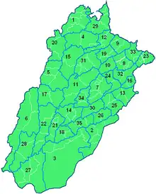 Pakistanske provins Punjab med dets opdeling i distrikter og Tehsil.