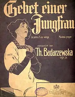 Hun er især kendt som komponist til salonstykket Jomfruens bøn, (Modlitwa dziewicy, Das Gebet einer Jungfrau, La prière d'une vierge) Op. 4, publiceret i Warszawa i 1856. Stykket blev i slutningen af det 19. århundrede trods eller på grund af dets enkelhed overordentlig populært og bearbejdet for mange forskellige besætninger. I alt skrev Tekla Bądarzewska ca. 35 stykker salonmusik for klaver, herunder det næsten ligeså opbyggede stykke Den hørte bøn (Prière exaucée).