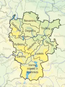 I Telšiai er der 11 seniūnijos (dansk: ~ bydele).