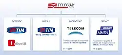 Telecom Italia Media FiberCop Telecom Italia Trust Technologies Telecom Italia Mobile Telecom Italia Finance Telecom Italia Capital Infrastrutture Wireless Italiane TIM Brasil TIMvision Persidera Telecom Italia Sparkle Telecom Italia San Marino Olivetti Telsy |