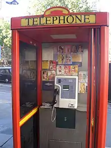 Telefonboks med reklamer for forskellgie seksuelle services, hvilket var normalt i Storbritannien inden internettet blev udbredt.