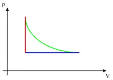 - isentropisk proces (ingen termisk varme tilføres eller fjernes fra arbejdsfluidet – entropien er konstant – det kaldes også en reversibel adiabatisk proces)[2]