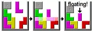 Traditionelle versioner af Tetris fjerner rækken af brikker med den samme højde som den clearede række. I modsætning til den ægte tyngdekraft kan nogen af brikkerne svæve over huller.