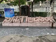 Fotoplanche udstillet på Thammasat Universitetets Tha Phrachan-campus fodboldbane.