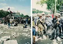 Valget resulterede i en svag koalitionsregering med fem partier, og da ingen af dem kunne præsentere en troværdig leder, blev posten som regeringsleder indtaget af en af kupmagerne, Suchinda Kraprayoon. Denne gang reagerede offentligheden stærkt, og der var store demonstrationer i Bangkoks gader. Demonstranterne krævede, at regeringslederen blev et af de folkevalgte parlamentsmedlemmer. Protesterne fortsatte hele foråret. Den 17. maj besluttede Suchinda at stoppe dem med vold. "Black May", som oprøret blev kaldt, forsatte til den 20. maj. Overgreb fra militæret førte til 52 dødsfald, hvorefter kong Bhumibol Adulyadej greb ind og Suchinda måtte gå af. Der blev indsat en overgangsregering og militærets øverstbefalende lovede, at militæret ikke ville gribe ind.[31]