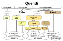 Imens Gondolin var under anlæg, boede Galadriel, søster til Finrod Felagund i Doriath, hvor hun talte med Melian om tiden i Valinor. Men Melian, som var Maiar, troede ikke ikke på at Noldorne var kommet som Valarnes sendebud. Efter Galadriel havde fortalt Melian om Silmarillerne og Finwës fald i Formenos, kiggede hun dybt ind i Galadriels sind, hvor hun anede sorg og ondskab, og fortalte Thingol at han skulle tage sig i agt for Feänorsønnerne, thi de havde blod på deres hænder. [46] Ved en lejlighed hvor Finarfinsønnerne gæstede Thingol i Menegroth, blev han meget vred og sagde, at ingen skulle tale Valinor-elvermålet, og de der brugte det skulle holdes for frændemordere. Nu brugte de Sindarinsproget til dagligdags brug, thi Sindarne veg uden om enhver der talte vestlandets højsprog. Det blev fra nu af kun talt indbyrdes mellem Noldo-fyrster og Mandos' ord gik i opfyldelse. [47]