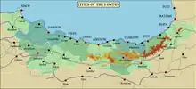 Ptolemæus (v. 6 § 3) tager uden tvivl fejl ved at placere den længere mod vest, midtvejs mellem Iris (Yeşilırmak) og Kap Heraklium. Scylax kalder det en græsk by; men Diodorus Siculus (ii. 44) angiver, at det er bygget af grundlæggeren af amazonernes rige. Efter Mithridates VI's tilbagetog fra Cyzicus under den tredje mithridatiske krig, blev Themiscyra belejret af Lucullus. Indbyggerne forsvarede sig ved den lejlighed med stor tapperhed; og da deres mure blev undermineret, sendte de bjørne og andre vilde dyr, ja endda bisværme, mod Lucullus' arbejdere (Appian, Mithrid. 78). Men til trods for deres galante forsvar, synes byen at være gået til grunde ved den lejlighed, for Pomponius Mela taler om, at den ikke længere eksisterer (i. 19), og Strabo nævner den slet ikke.[6]
