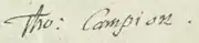 Thomas (Champian) Campion (døbt 12. februar 1567 begravet 1. marts 1620 i England) var en digter, komponist og læge, der skrev sang og melodier til hoffet. Hans første lutsange blev udgivet i 1601, og han udgav yderligere fire samlinger; alle til sine egne digte.