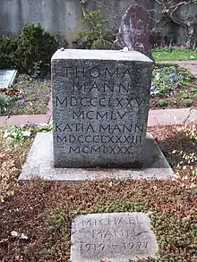 De sidste år af sit liv tilbragte Thomas Mann derfor hovedsageligt i Schweiz, afvekslende med jævnlige besøg i Tyskland. Han døde på et sygehus i Zürich og ligger også begravet i Schweiz.[10]