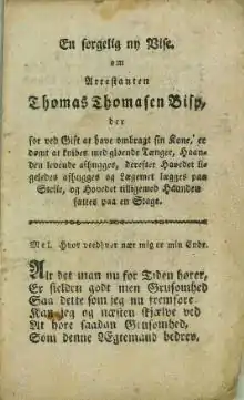 For sin udåd blev Thomas Thomasen Bisp dømt til at blive henrettet, ved først at blive knebet med glødende tænger tre gange, få sin højre hånd afhugget, halshugget og til sidste lagt på hjul og stejle. Han blev dog delvis benådet af kong Frederik 6., der mente at det ikke var nødvendigt med knibningerne og afhuggelsen af hånden; men hovedet skulle han dog af med.