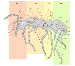 Hos medlemmer af underordenen Apocrita (hvepse, myrer og bier) i ordenen Hymenoptera er det første segment af bagkroppen (abdomen) sammensmeltet med thorax i en struktur kaldet propodeum. Hovedet er forbundet med thorax gennem en åbning (occipital foramen), som spiserøret går igennem, og danner en nakke, der muliggør at hovedet kan bevæge sig fleksibelt.[3]