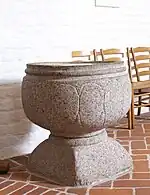 Kirkens døbefont er det ældste bevarede inventar. Den er fra den romanske tid, men meget simpel både i størrelse og dekorationer. Det tilhørende dåbsfad er fra 1700-tallet, dåbskanden fra 1965.