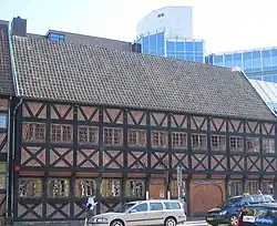 Portbjælken og dørbjælken ud mod gaden er de originale og fortæller, at det var den rige Tage Thott og hustruen Else Ulfstand som opførte huset i 1558. Førstesalen har interessante vægmalerier fra tiden for huset opførelse, blandt andet Nordens ældste afbildede kalkun.