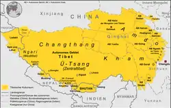 De fleste tibetanere under Folkerepublikken Kinas kontrol bor i Den autonome region Tibet (44,81 %) og i de tilgrænsende provinser Sichuan (23,43 %), Qinghai (20,06 %), Gansu (8,18 %) og Yunnan (2,37 %).