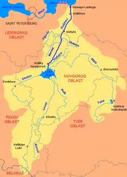 | Afvandingsområde | Novgorod oblast og Leningrad oblast i Rusland |