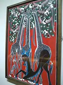 Tingatinga-kunstnere i Østafrika er organiseret i The Tingatinga Arts Cooperative Society.[2]