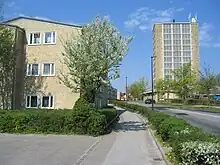 Tingbjerg består af treetagers boligblokke bygget i gule mursten med karakteristiske hvide skodder, samt et enkelt højhus i 12 etager.
