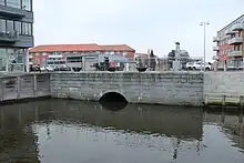 Udløbet af Tingsted Å ved Slotsbryggen i Nykøbing Falster.