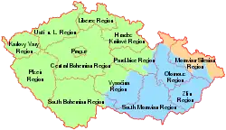 Siden 1. januar 2000 har Den tjekkiske republik bestået af 14 regioner (i henhold til Tjekkiets lov 129/2000 o krajích (om regioner), som erstattede den gamle paragraf 1/1993 i Tjekkiets konstitution o Vyšších územně správních celcích (om højere geo-administrative enheder)). Den tjekkiske republik består af tretten kraj (almindeligvis oversat med region, og en hovedstad (hlavní město; som har status som kraj). De 76 gamle distrikter (okresy, ental okres) eksisterer fortsat og har forskellige dele af statsadministrationen, f.eks. retsvæsen.