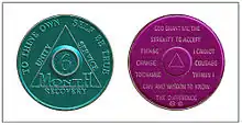 AA (Alcoholics Anonymous) er stiftet i USA i 1935 af to alkoholikere: Bill Wilson børsmægler i New York og lægen Bob Smith i Akron i Ohio. AA udspringer af Oxford-gruppen, men Wilson og Smith tog afstand fra gruppens kristne tilgang og lavede i stedet en selvhjælpsgruppe for alkoholikere, der var ikke-religiøs, og i stedet var spirituel og filosofisk [5][6][7][8]. Grundlaget for AA er filosofiske og åndelige behandlingsprincipper, der til dels blev formuleret af psykiateren Carl Gustav Jung og blandt andet kan spores tilbage den italienske filosof Thomas Aquinas[2][9].[3]