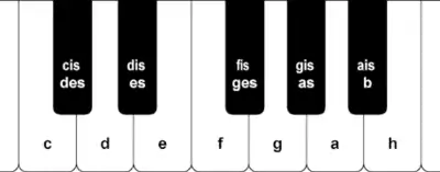 I den vestlige musik bruges 12 toner som grundtoner: C, Cis, D, Dis, E, F, Fis, G, Gis, A, Ais, H.