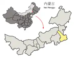 Tongliaos beliggenhed i Indre Mongoliet