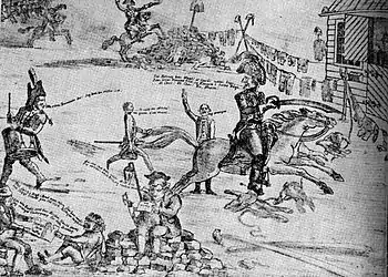 Da folk ikke gik hjem satte statholder von Platen kavaleriet ind mod mængden. Flere blev redet ned. Folk reagerede med chok og vantro. Derefter blev fodfolk fra fæstningen sat ind; de havde fået uddelt skarp ammunition. Der blev ikke affyret skud, men soldaterne slog med geværkolber og -løb. Folk forskansede sig på trapperne omkring torvet og på høje af opstablede brosten. På anmodningen om at gå indendøre gik enkelte i direkte kamp med soldaterne. Undervejs kom byens borgerskab til. I tumulten blev flere af dem hårdt skadet, og nogen blev gjort uarbejdsdygtige i ugevis.