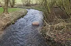 Lidt øst for Tostrupvejs bro over åen ligger en natursten ude i vandet, hvor en ung mand i 1920 huggede en inskription til minde om Genforeningen i 1920. Det er den eneste af landets ca. 600 genforeningssten, der ligger i vand.[5][6]